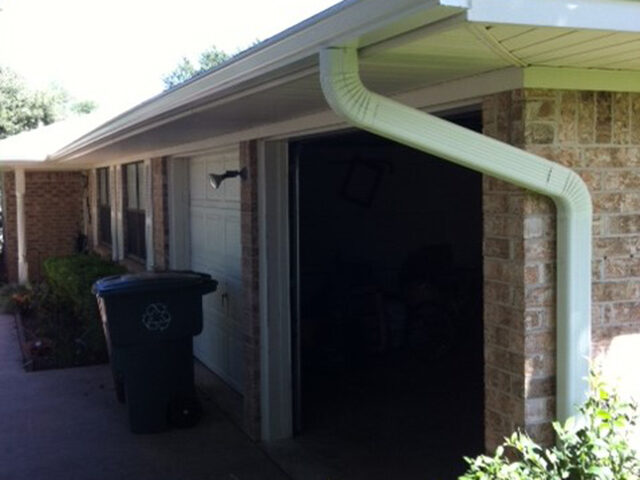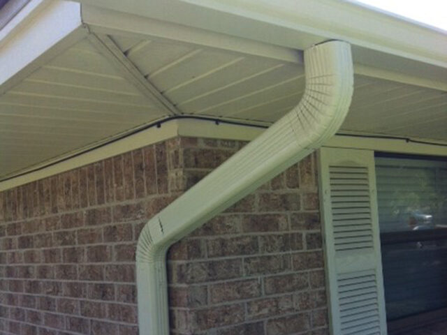 As with ALL of our gutter systems, we use ONLY 3×4″ downspouts, and in some cases LARGER. This is because using larger downspouts and sloping the gutter towards the outlets not only allows the gutter to drain faster but also aids in pushing the gutter debris out when it rains.