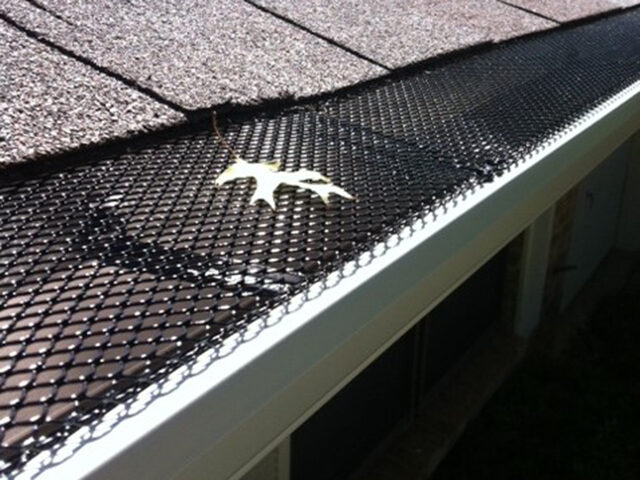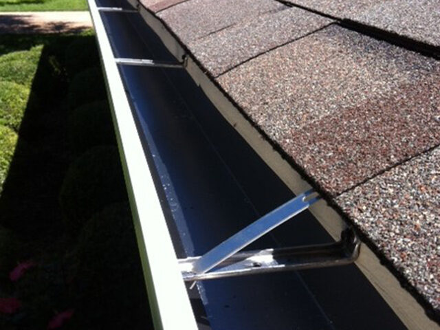 With any gutter installation, we always offer or recommend the homeowner the option of leaf protection when needed. Our Leaf guards make your gutters a low maintenance asset. Light weight and visually pleasing, they will save you time and money in maintenance costs! They are secured under the shingles, and fastened using a screw at every 4′ joint.
