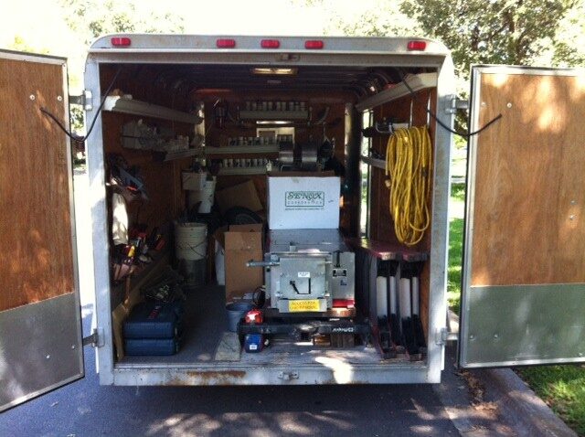 Keeping our 5″ gutter machine in our enclosed trailer helps to achieve many things. Road and job site dirt and debris are kept off and out of the machine and protects it from excessive wear, giving the homeowner a quality gutter each and every time.